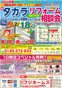 2023年2/18(土) おタカラリフォーム相談会 タカラスタンダード京都南ショールーム