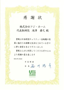 日本財団さまから感謝状を頂きました。
