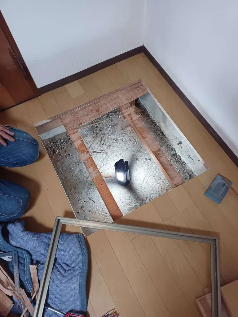 点検口の設置では、床材を切断して点検口枠と蓋を設置していきます!