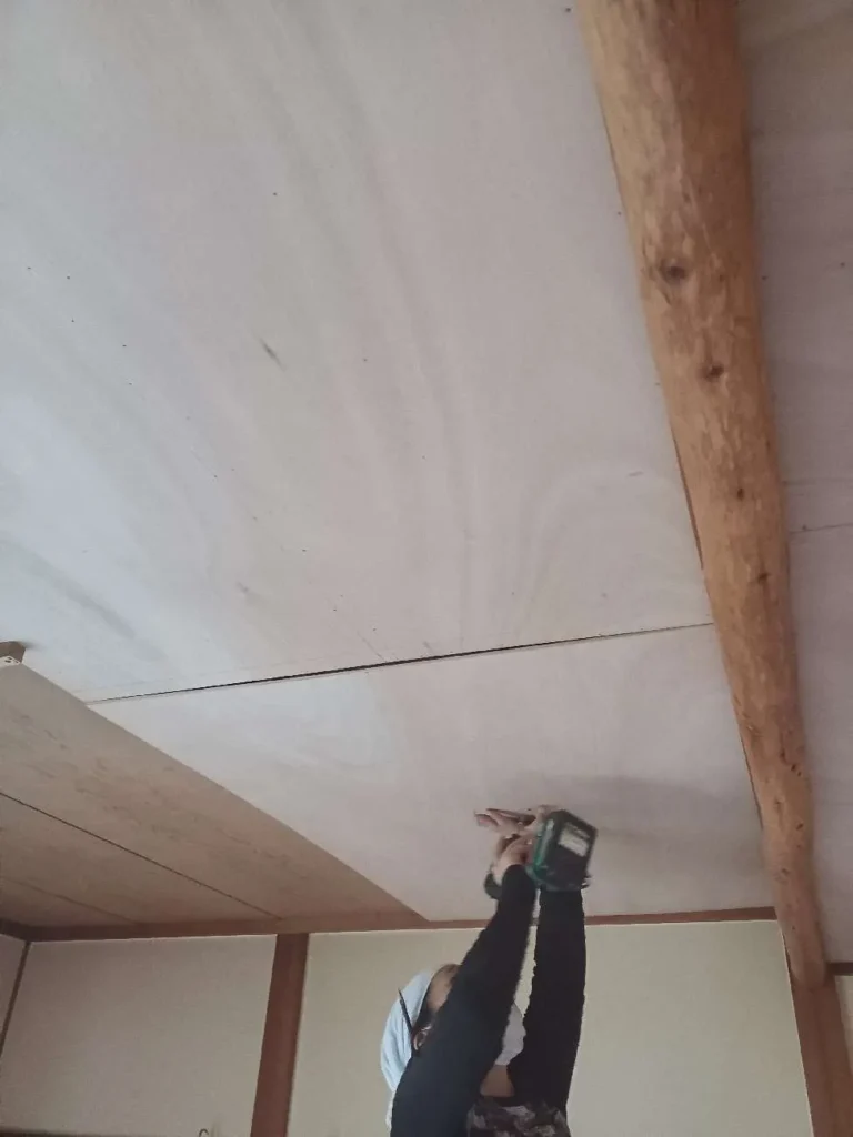 京都市伏見区でシロアリ駆除工事|点検口新設|和室天井貼替|サッシ貼替|勝手口ドアノブ交換