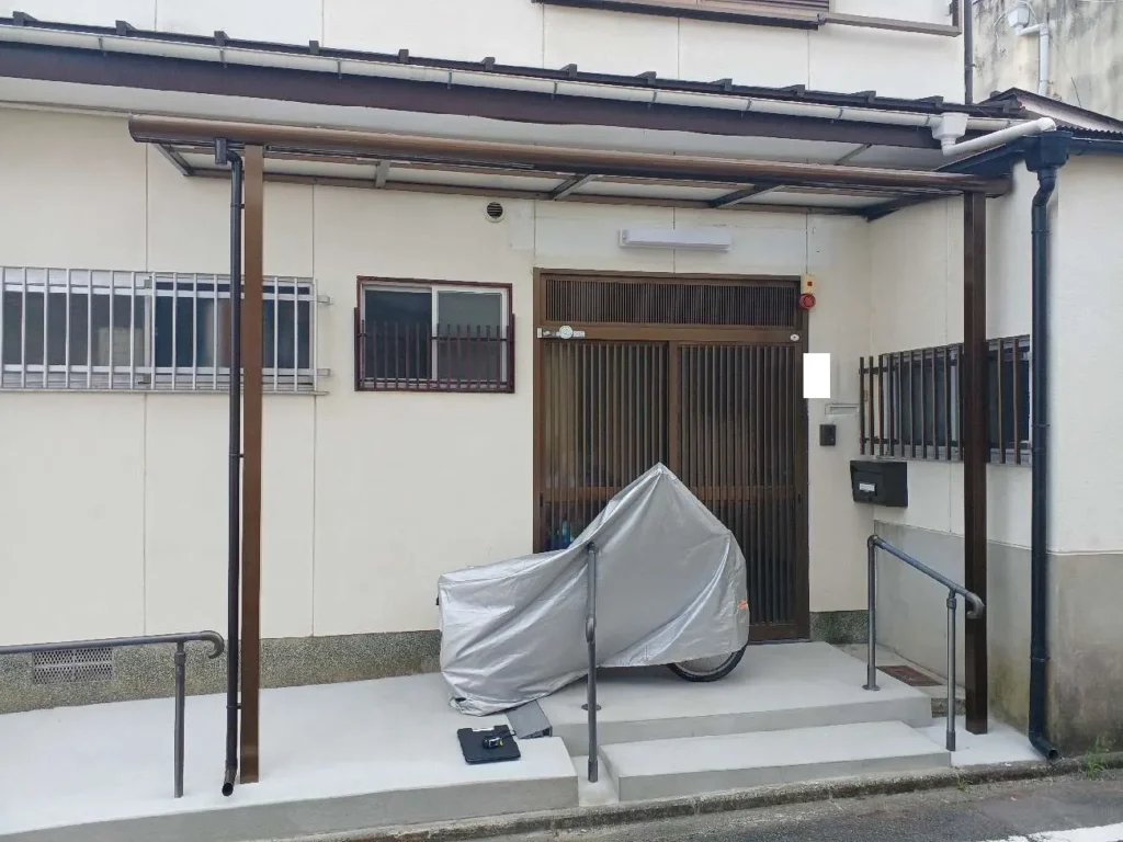 « 京都市左京区で玄関前リフォーム(土間|マス|ポーチ屋根|テラス|照明|ポーチ撤去)