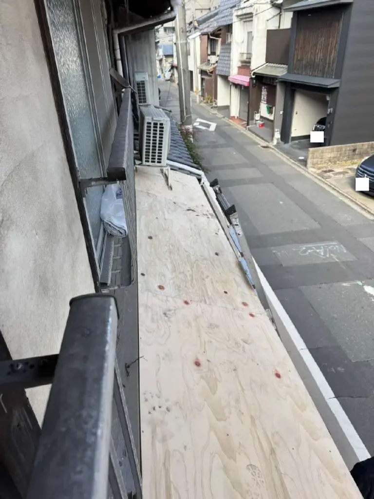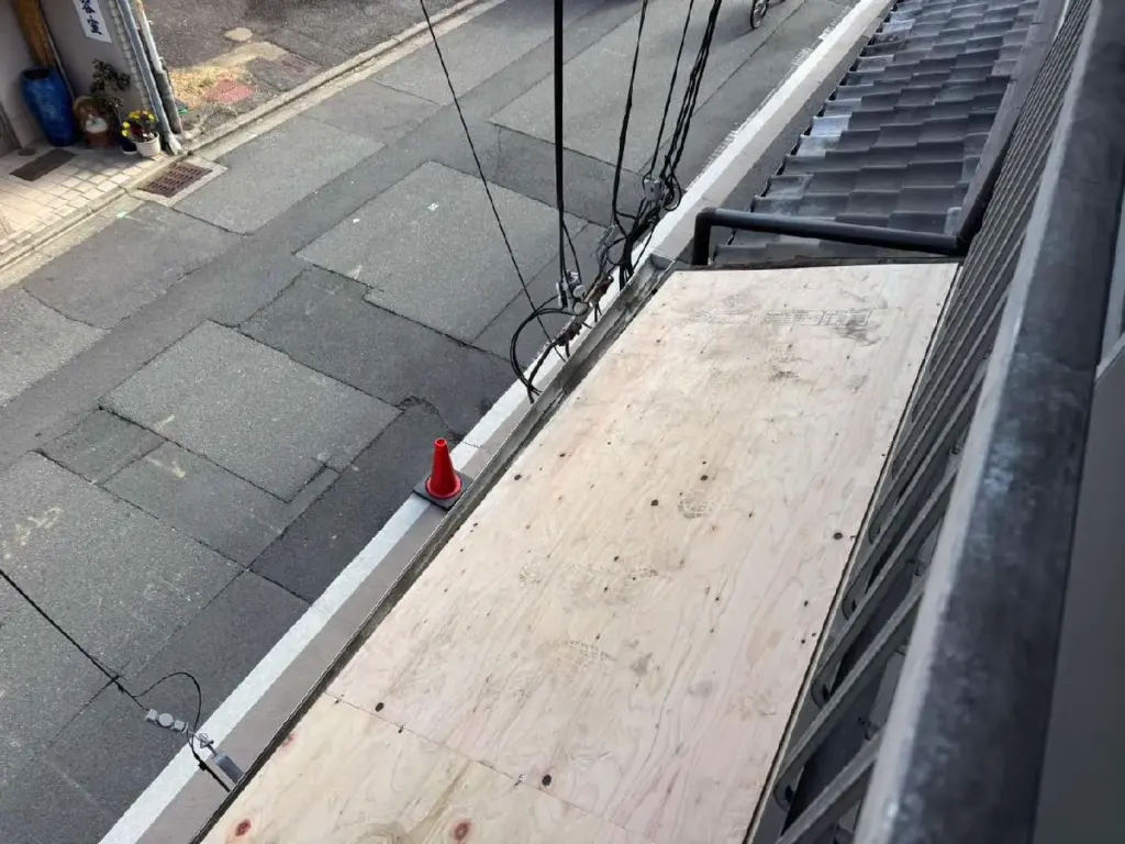 京都市東山区 椿谷きもの教室様 和室・浴室改修・給湯器・下屋根葺替・樋/洗面台・玄関土間・勝手口・裏ベランダ下屋根①下屋根葺替工事