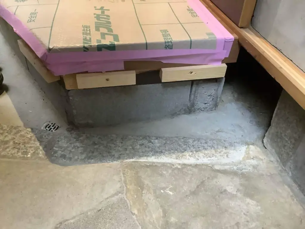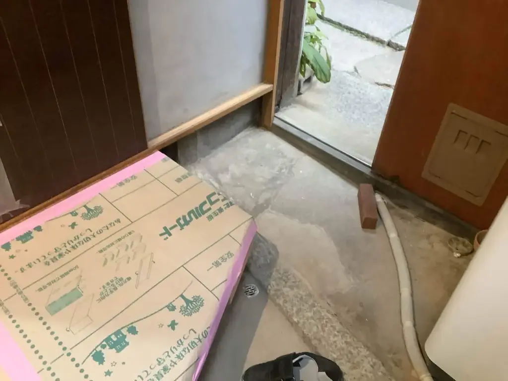 京都市東山区 椿谷きもの教室様 和室・浴室改修・給湯器・下屋根葺替・樋/洗面台・玄関土間・勝手口・裏ベランダ下屋根➂玄関土間・勝手口工事