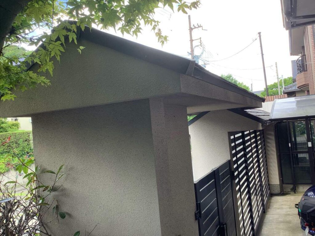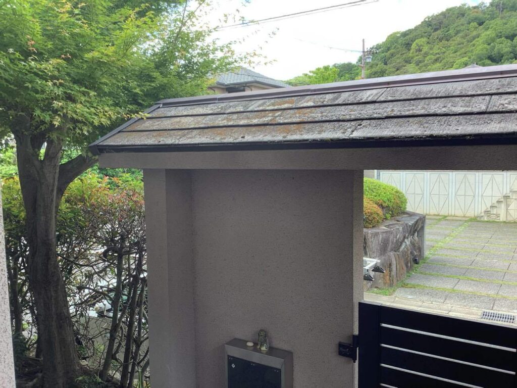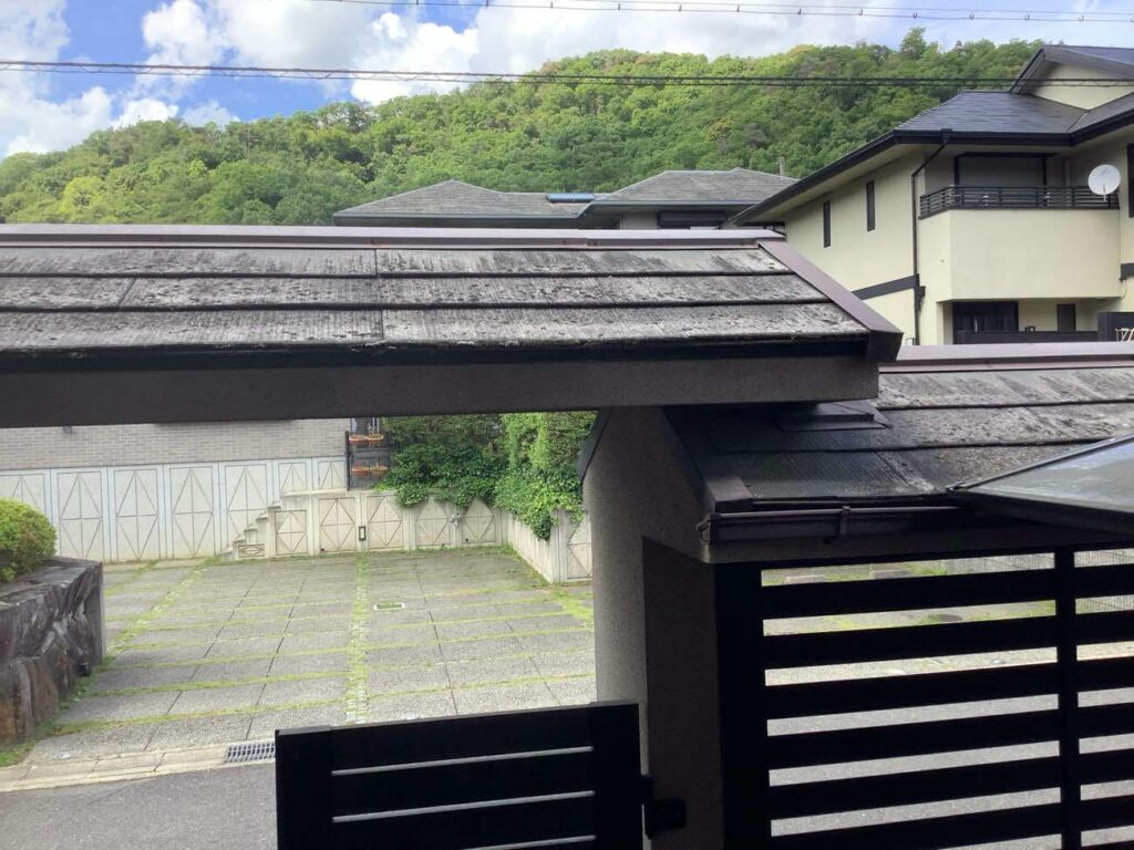 現地調査をしたところ、門屋根の色褪せも見受けられたため、内部工事と併せて施工していきます😊