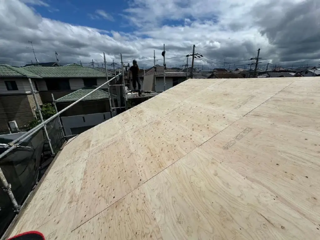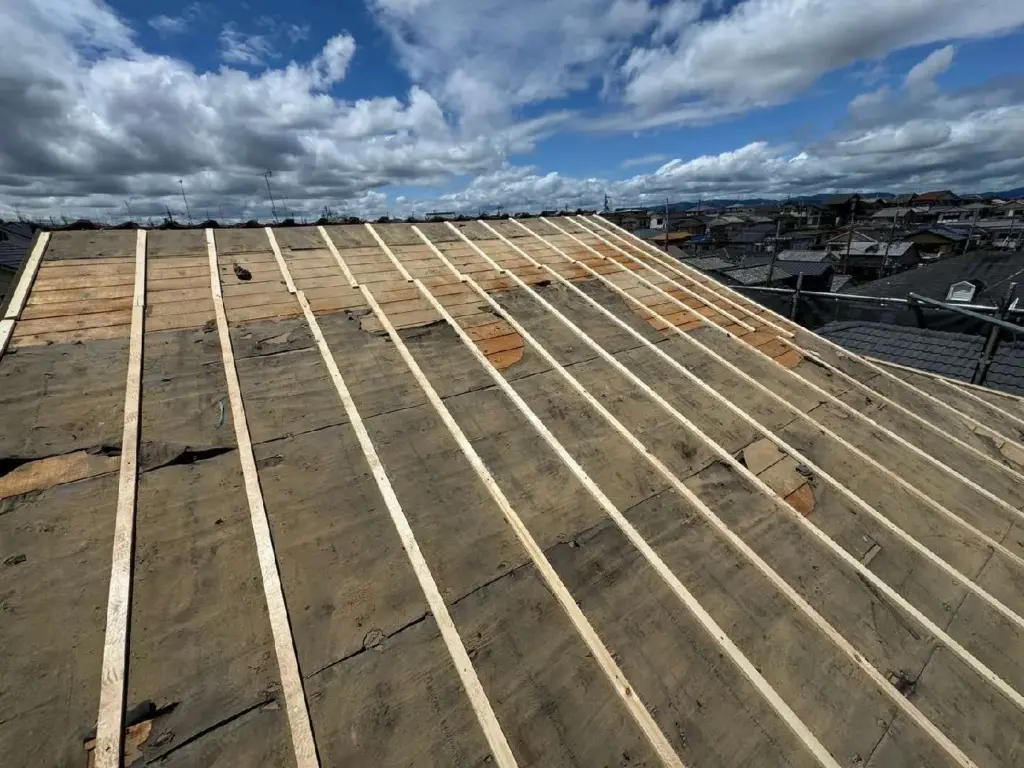 宇治市F様邸 屋根・樋・浴室・洗面所・クロス・襖・玄関天井他/屋根材変更/エアコン④屋根工事 ■施工中(屋根工事)今回は屋根工事の様子をリポートしました🎶次回は、工事後の屋根がどんな風になったかリポートしますので、是非ご覧下さい😊« 宇治市F様邸 屋根・樋・浴室・洗面所・クロス・襖・玄関天井他/屋根材変更/エアコン➂足場組立京都市東山区 椿谷きもの教室様 和室・浴室改修・給湯器・下屋根葺替・樋/洗面台・玄関土間・勝手口・裏ベランダ下屋根①下屋根葺替工事 » お問い合わせ リストに戻る