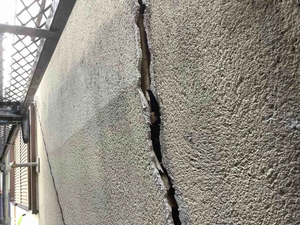 外壁にひびが入ってしまっている状態です。外壁のひび割れは、雨漏りの原因となる可能性が高いため、要注意です!ご自宅の外壁をご覧になって、ひび割れ等が無いかの確認をおすすめします💡